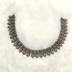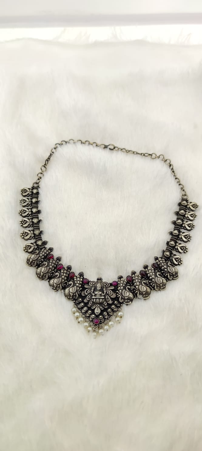 92.5 sterling silver necklace with an antique finish in less weight for a good party wear look .which makes you even more pretty.